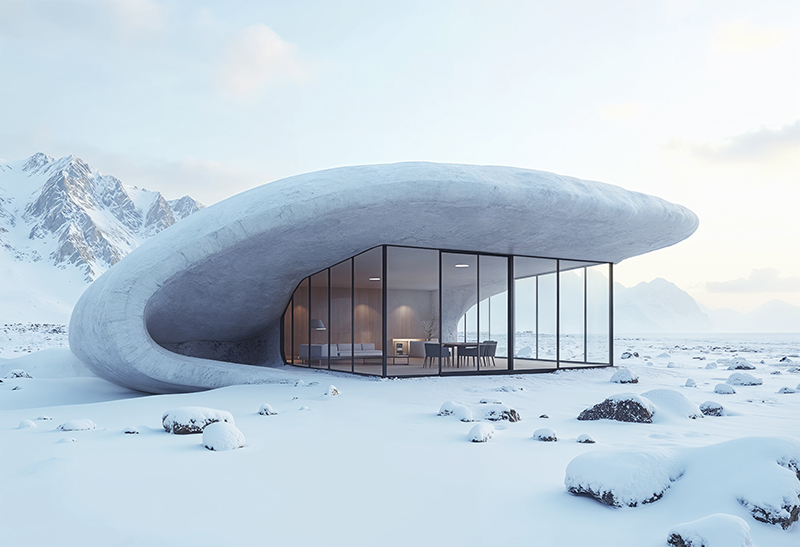 Современные отели выделяются архитектурными решениями. Например, купольные дома с прозрачной крышей дают возможность наблюдать северное сияние без выхода на улицу. Подобные конструкции выдерживают низкие температуры до -30 °C и сохраняют тепло за счет многослойных материалов. Внутреннее пространство таких объектов продумано с учетом компактности: площадь номеров обычно составляет 20-35 кв. м, что достаточно для комфортного размещения и хранения оборудования.